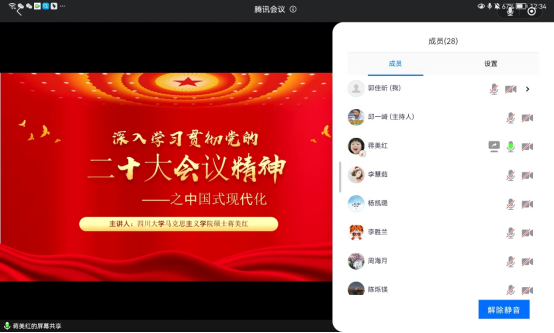 的蒋美红同志进行“中国式现代化”的专题分享。此次二十大精神学习活动于2022年11月11日通过线上方式(腾讯会议)进行,支部副书记邱一崎主持会议。