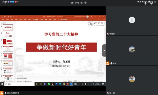 党的二十大科学谋划了未来一个时期党和国家事业发展的目标任务和大政方针,擘画了以中国式现代化全面推进中华民族伟大复兴的宏伟蓝图,学习宣传贯彻党的二十大精神,是当前和今后一个时期全党全国的首要政治任务。为进一步学习贯彻党的二十大精神,2022年12月9日20:30,日本色情片2020级硕士第二党支部书记何玉霞老师通过线上方式(腾讯会议)为支部全体党员讲党课,支部副书记邱一崎主持会议。
