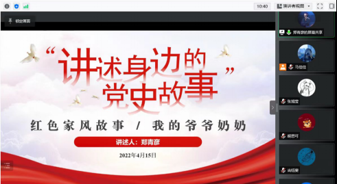 4月15日,2021级硕士党支部旅游管理学硕团支部联合线上开展了以“清风川大”为主题的家风宣传活动,邀请了2019级会展与节事管理专业研究生郑青彦做《红色家风故事:我的爷爷奶奶》的家风故事分享。