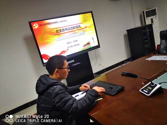 于2019年12月20日在江安校区文科楼2-518会议室召开党支部书记述职考核报告会,会议由院党委书记陶宏主持,院党委副书记姜华,副院长鲍成志、王果、夏春峰,工会主席王晓辉和支部书记20余人参加了报告会。