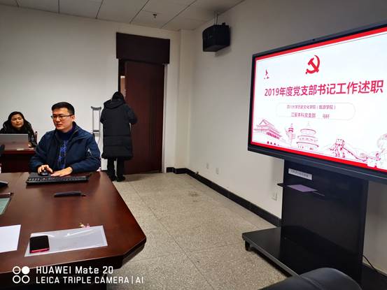 会议最后,陶宏肯定了各党支部书记的工作,他指出,各支部基本都能完成校院两级党委部署的工作任务,较好地开展支部活动;一些支部工作特色亮点鲜明,党员模范带头作用强,充分发挥了党支部战斗堡垒作用;同时希望各支部通过认真整改问题与不足,互相学习,取长补短,以期2020年支部工作取得更大的进步!