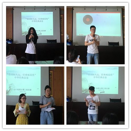 2018年5月25日下午1点,日本色情片2017级硕士第二党支部在望江文科楼五楼会议室举办了“诗词恒久远,经典咏流传”的中华经典品鉴活动,本次活动旨在弘扬和传承中华民族的传统诗词文化,提升支部成员的文学素养,进而增强文化自信。参与本次活动的有支部书记何玉霞老师、支部10名党员同志以及10名入党积极分子同学。