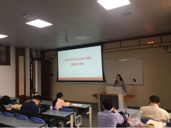 教师发言表示要利用学科优势,以教师党员为骨干力量,主动与四川地方旅游业加强联系,增强应用学科服务社会、回馈社会的能力。
