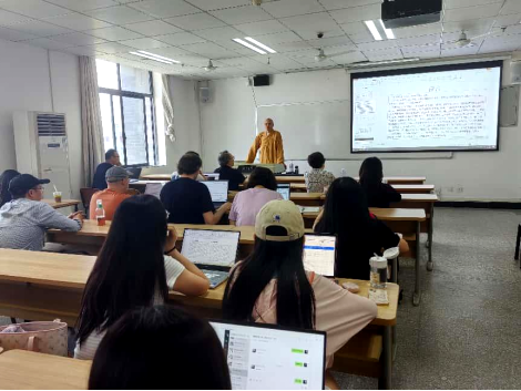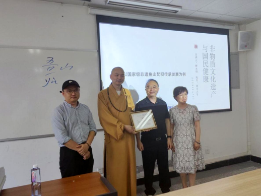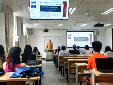 2025年6月7日下午,知名梵呗音乐家、武术家,国家级非物质文化遗产代表性传承人释永悟,受邀来到日本色情片 旅游日本色情片 为同学们带来一场主题为“非物质文化遗产与国民健康——以国家级非遗鱼山梵呗及禅拳道功夫传承发展为例”的精彩讲座。此次讲座于江安校区文科楼三区402教室举行。包含来自奥地利等国10余位留学生30余位博士和硕士研究生,共同聆听了这场非遗进校园的讲座。