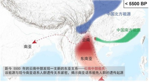 本研究的第二项重要发现是证实了云南可能是南亚语系族群早期分布的核心区域之一。以佤族、布朗族等主要分布于中国西南、华南以及印度东北部、东南亚(如越南、柬埔寨、老挝等地部分民族)的南亚语系族群起源及扩散问题长期众讼不决,尤其是其起源地、扩散时间、扩散路径等问题争议很大。目前主流假设源于语言学模型,缺乏直接遗传学证据。本研究通过古人基因组捕获、测定、分析,在云南中部距今5500至1400年古人群中识别出一种新的独特东亚祖源,研究团队将其命名为“云南中部祖先人群”(Central Yunnan Ancestry),分析表明这一祖源与当今南亚语系人群密切相关,否定了既往认为的南亚语系族群印度或东南亚起源说,提出了重新审视南亚语系族群形成、传播模式等一系列问题。