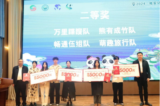 、四川省旅投集团、雅安市文化广播电视体育和旅游局共同主办,以雅安文旅资源为“素材”,以市场接受度为评价标准,智造符合当前旅游市场喜好及消费习惯的创新线路和玩法。本次大赛共吸引了5000余名在校大学生报名,最终来自全省12所高校的132支队伍、550余名在校大学生参加初赛。经过初赛评审,30支队伍入围决赛阶段,最终通过线上投票和线下路演决出一等奖2名、二等奖4名、三等奖6名及优秀奖18名。