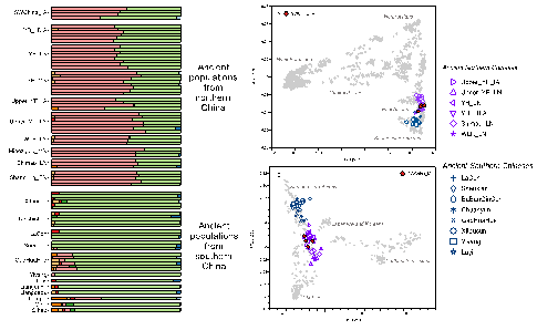 自2013年国内首例古基因组数据发表以来,越来越多的古DNA研究加深了我们对古代中国人群的遗传起源和混合迁徙历史的理解,然而由于四川盆地气候潮湿,土壤以微酸性为主,不利于古DNA的保存,因此我国西南地区的古DNA研究非常不足。该研究结合古DNA、体质人类学和考古学三方面证据,对眉山青神县鸿化村汉代崖墓M4墓葬中出土的人类骨骼遗骸进行综合性研究。研究发现M4墓葬中个体的DNA结构不同于其他已经发表的中国南方古代基因组数据,而与黄河流域的古代人群有显著的遗传关联。因此研究结果表明东汉时期,四川盆地人群与中原人群存在广泛的基因交流。