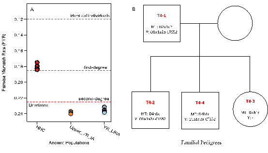 在过去的几十年里,在考古背景下推断个体之间的亲属关系通常是通过间接方法来实现的,例如分析死者的埋葬安排或进行考虑生物特征和健康状况的人类学调查。然而鲜有研究利用古DNA的方法对墓葬中个体间的血缘关系进行直接的遗传学鉴定。本研究利用高分辨率古DNA亲缘关系鉴定技术重建了M4墓葬中个体的家族关系,结果显示这些个体组成了一个核心家庭,表明在当时,血缘关系在四川盆地崖墓人群的埋葬习俗中起着重要作用。