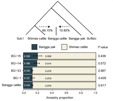 邦嘎黄牛中拥有12.1-19.5%的邦嘎牦牛血统