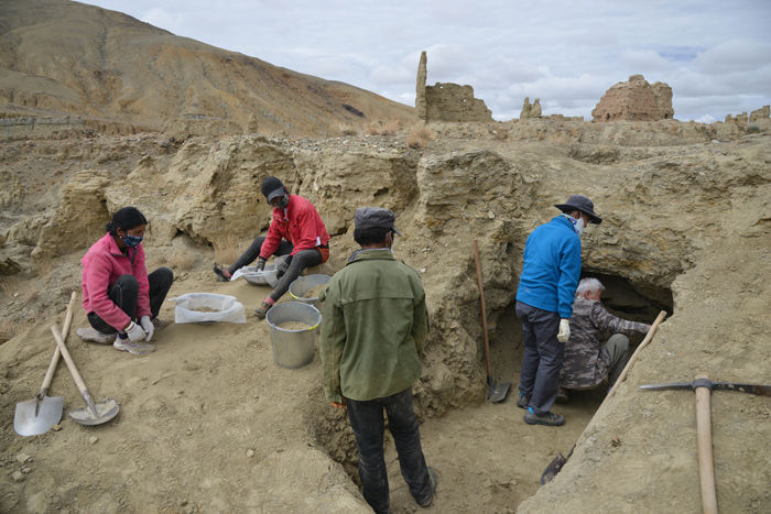 考古人员在西藏阿里皮央东嘎墓葬遗址发掘清理 霍巍 摄