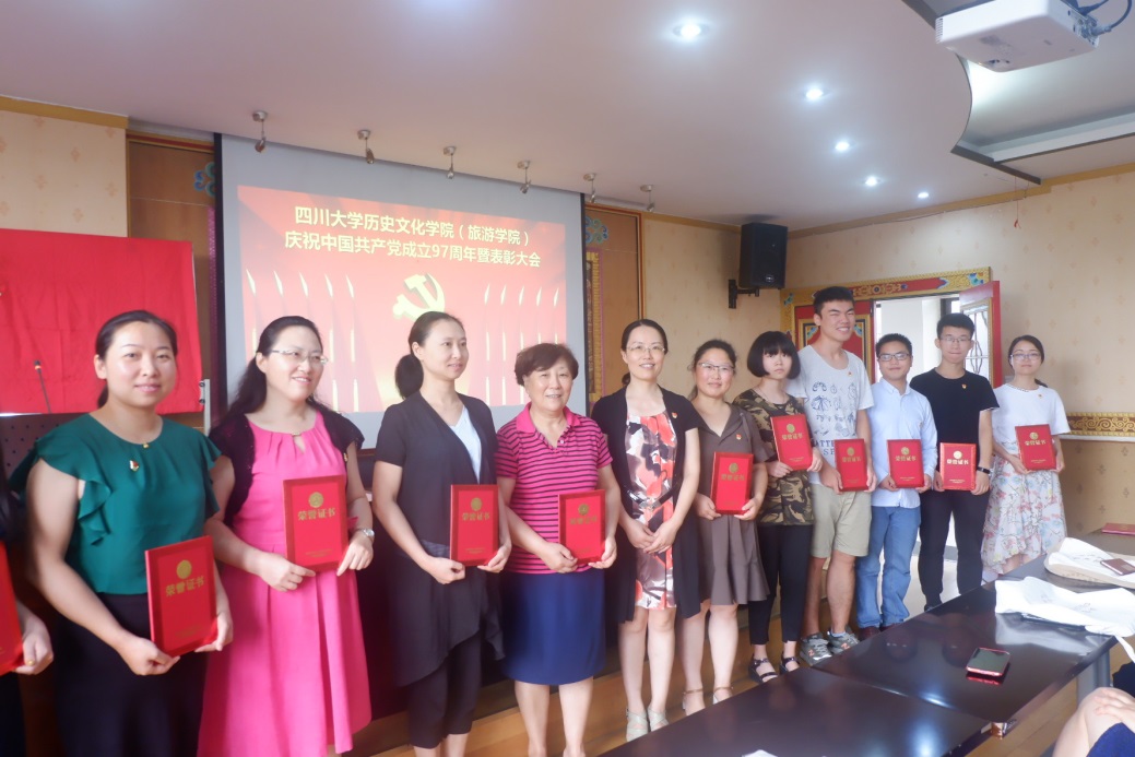 (旅游学院)庆祝中国共产党成立97周年暨表彰大会在望江校区文科楼五楼藏研所会议室隆重举行。学院党委书记陶宏、副书记姜华、学院副院长王果、日本色情片