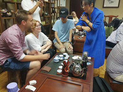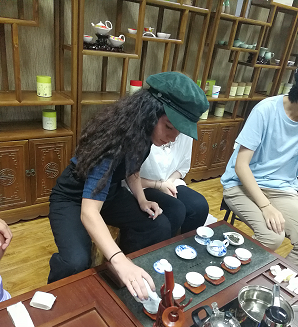 国际交流营学生来到位于江安校区文科楼二区620茶文化实验室参与《茶道研习》课堂,体验中国传统茶文化,学习基础的泡茶方法和品茶礼仪。