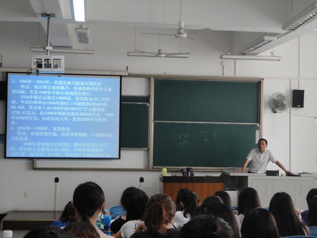 酒店管理系主任李原教授为江安校区2010级旅游管理专业同学进行了题为“中国饭店业的现状与未来发展任务”的精彩讲座。李教授通过对当前我国饭店业的现状分析,发现存在的一些尚需解决问题,引导出饭店业未来发展的主流趋势。
