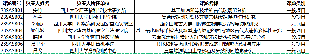 考古科学中心开放课题一般项目立项名单
